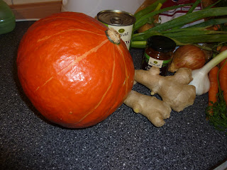 Ein Kürbis-Karotten-Kartoffel-Kokos-Knoblauch-Körri- Süppchen. Nagut, halt Curry, wir wollen ja nicht übertreiben. Es war gar köstlich. Falls jemand sich interessiert, schreibe ich mal mein Rezept auf.